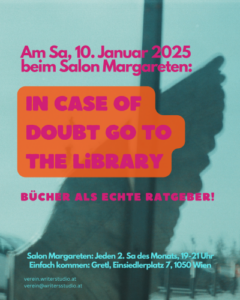 - Salon Margareten – jeden 2. Samstag des Monats > Sa, 10. Januar im Gretl in 1050 Wien.(Kostenfrei)